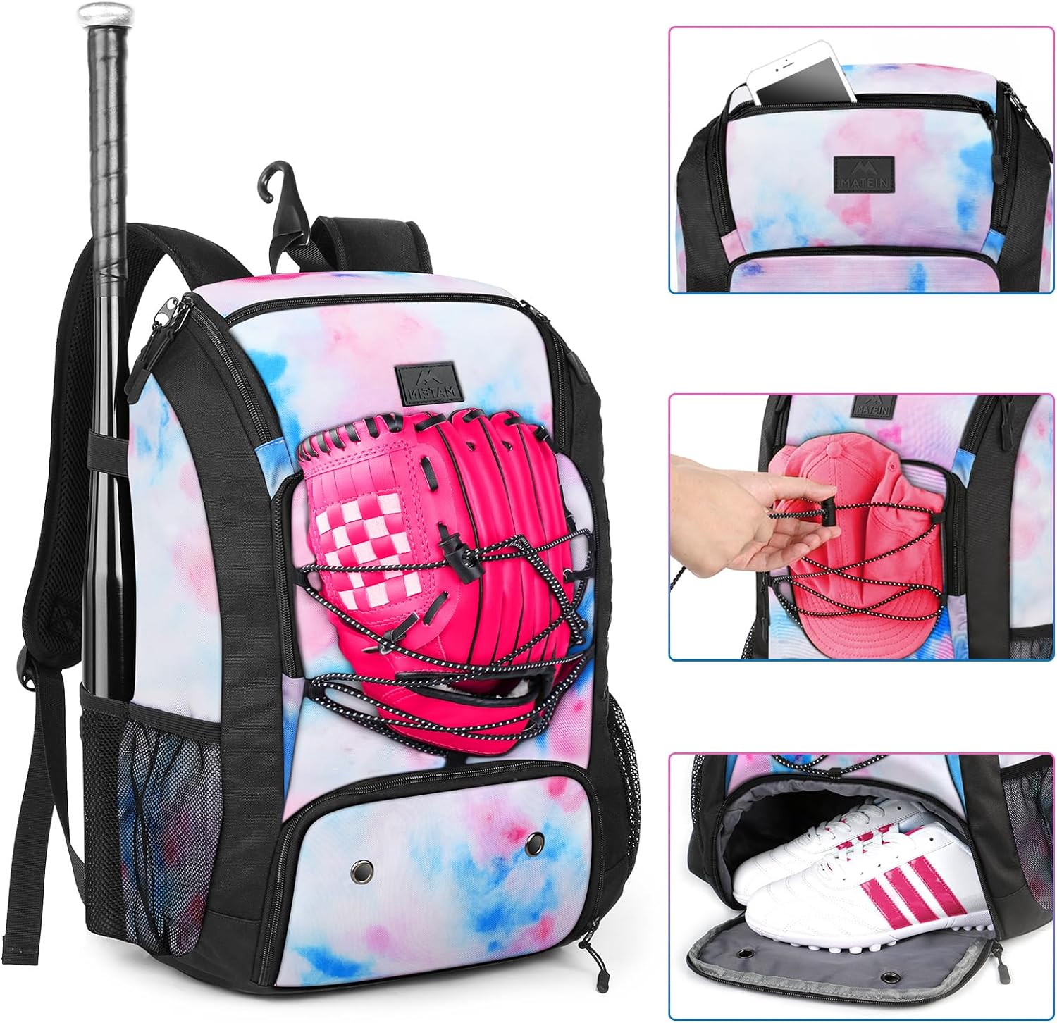 SHOE COMPARTMENT: External big shoe compartment can separate your baseball shoes from the rest of your equipment free from dirt and mud. 2 ventilated hole keep your cleats dry and be ready for the next big game. It's a great middle baseball bag for women, tie dye softball bag for women, lady and also a nice equipment bag for adult