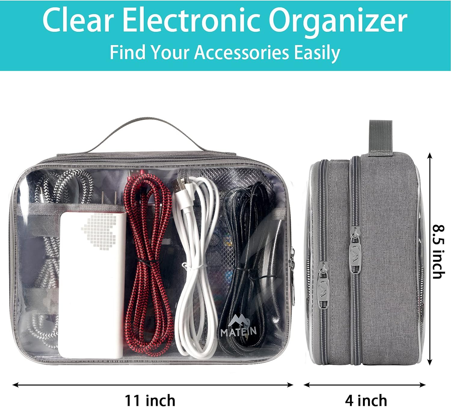 MATEIN Electronics Organizer Travel Case Water Resistant Cable Organizer Bag for Travel Essentials Tech Travel Gifts for Men Cable Storage Bag as Travel Accessories for Phone Cord iPad Black3  Clear Grey Medium