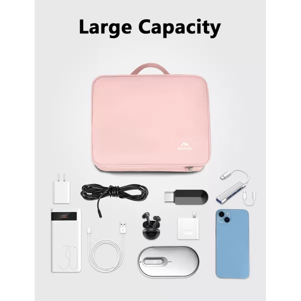 MATEIN Electronics Organizer Travel Case, Water Resistant Cable Organizer Bag for Travel Essentials, Tech Travel Gifts for Men, Cable Storage Bag as Travel Accessories for Phone, Cord, iPad, Black(6-Pink Large)