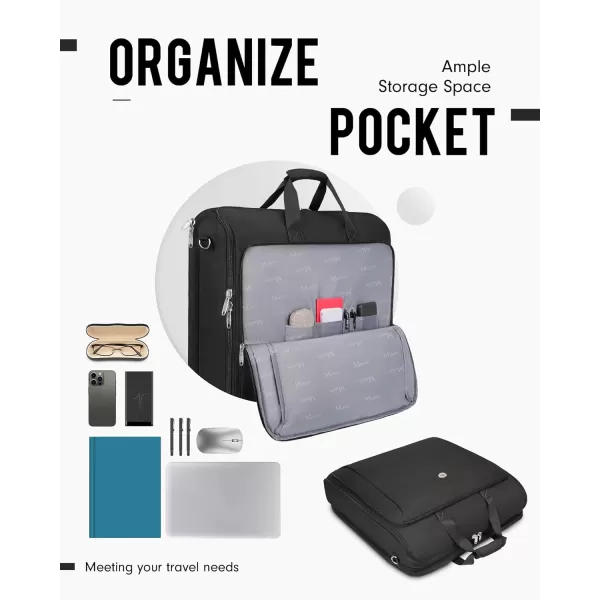 MATEIN Garment Bags for Travel, Large Double Layer Suit Bags with Shoulder Strap for Men Women, Foldable Carry On Garment Bags for Hanging Clothes, Convertible Business Luggage Weekender Bags, Black(Black)