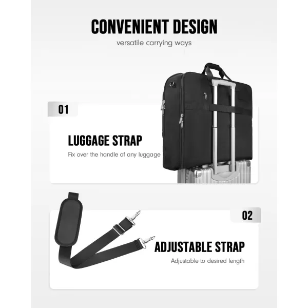 imageMATEIN Garment Bags for Travel Large Double Layer Suit Bags with Shoulder Strap for Men Women Foldable Carry On Garment Bags for Hanging Clothes Convertible Business Luggage Weekender Bags BlackBlack