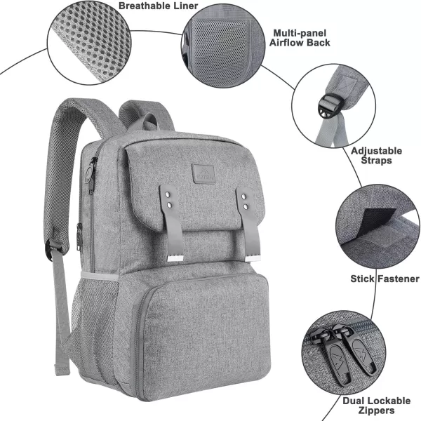 MATEIN Lunch Bags for Women, Cooler Lunchbox Insulated Work Backpack with USB Charging Port, Water Resistant Travel Computer Bag College Daypack Fits 15.6 Inch Laptop Friendship Gifts for Women, Grey(Grey)