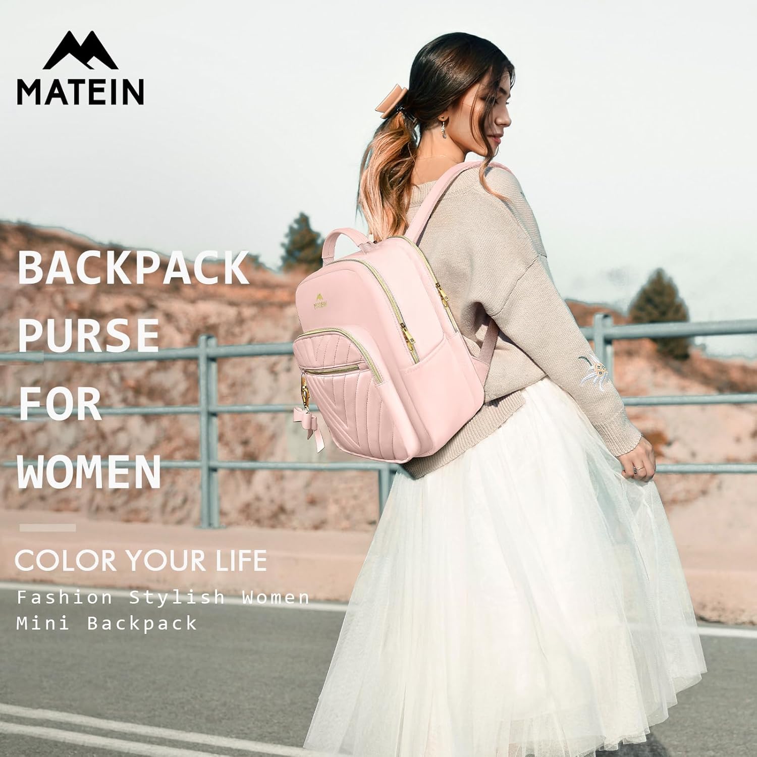 RELIABLE MATERIAL: Mini backpack for women is made of waterproof smooth polyester material and sturdy polyester lining. This backpack purse for school has a detachable cute bow-knot, gold double zippers and comfort handle; USB interface with built-in cable design, great convenience for charging your electronic devices via connecting your own power bank; Foam padded shoulder strap is comfortable to carry on for a long time