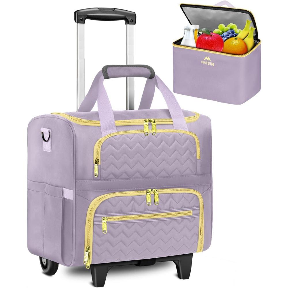 MATEIN Rolling Briefcase for Women, Rolling Work Bag with Wheels & Detachable Cart Fit 15.6 Inch Laptop, Roller Laptop Tote Bag with Insulated Lunch Box for Teacher Commute Office Work College, Purple(Purple)