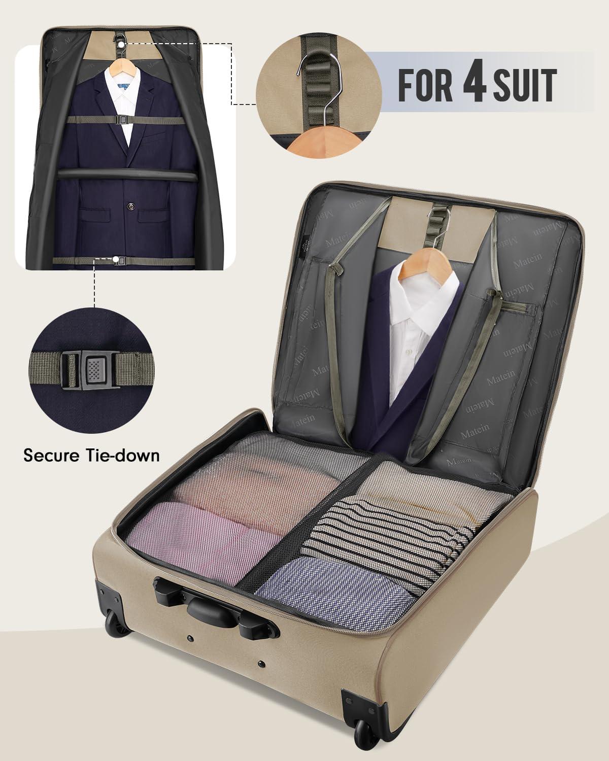 image:imageMATEIN Rolling Garment Bags for Travel Large 2Wheeled Suit Carrier Fits 173Inch Laptop Foldable Travel Suit Bag With Wheels amp 2 Packing Cubes Checkin Suitcase Luggage for Business Trips BlueKhaki