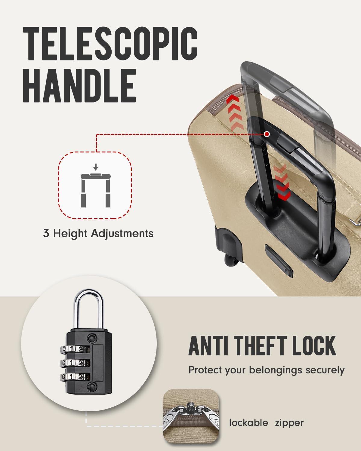 – Easy Maneuverability: Equipped with sturdy wheels and a lightweight, 2-stop aluminum telescoping handle for effortless transport