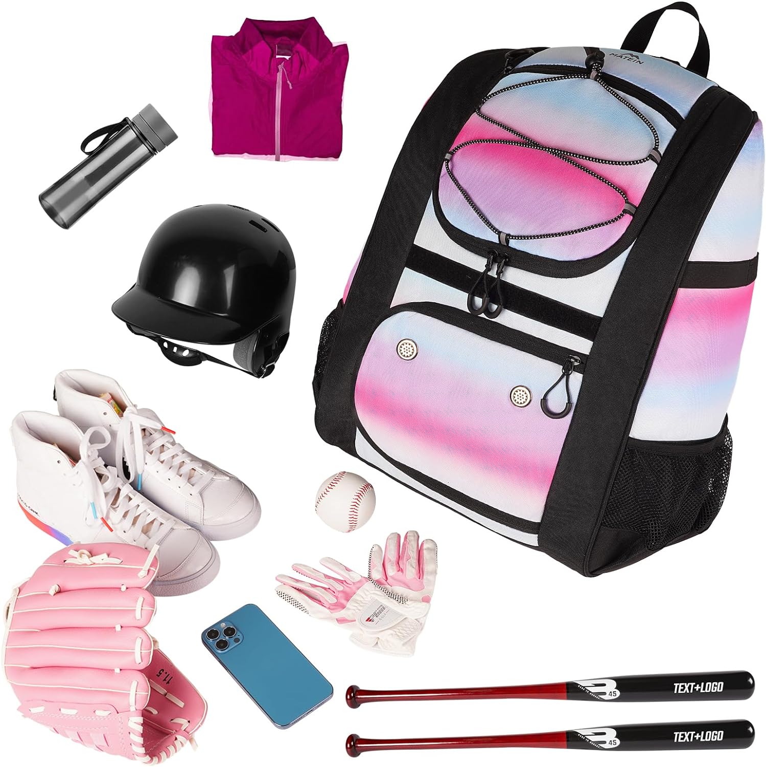 MATEIN Softball Bag Lightweight Baseball Bat Backpack with Shoe Compartment Baseball Bag with Fence Hook for TBall Bat amp Equipment Softball Gift Catchers Bags for Women Fit Batting Glove HelmetPink  Large