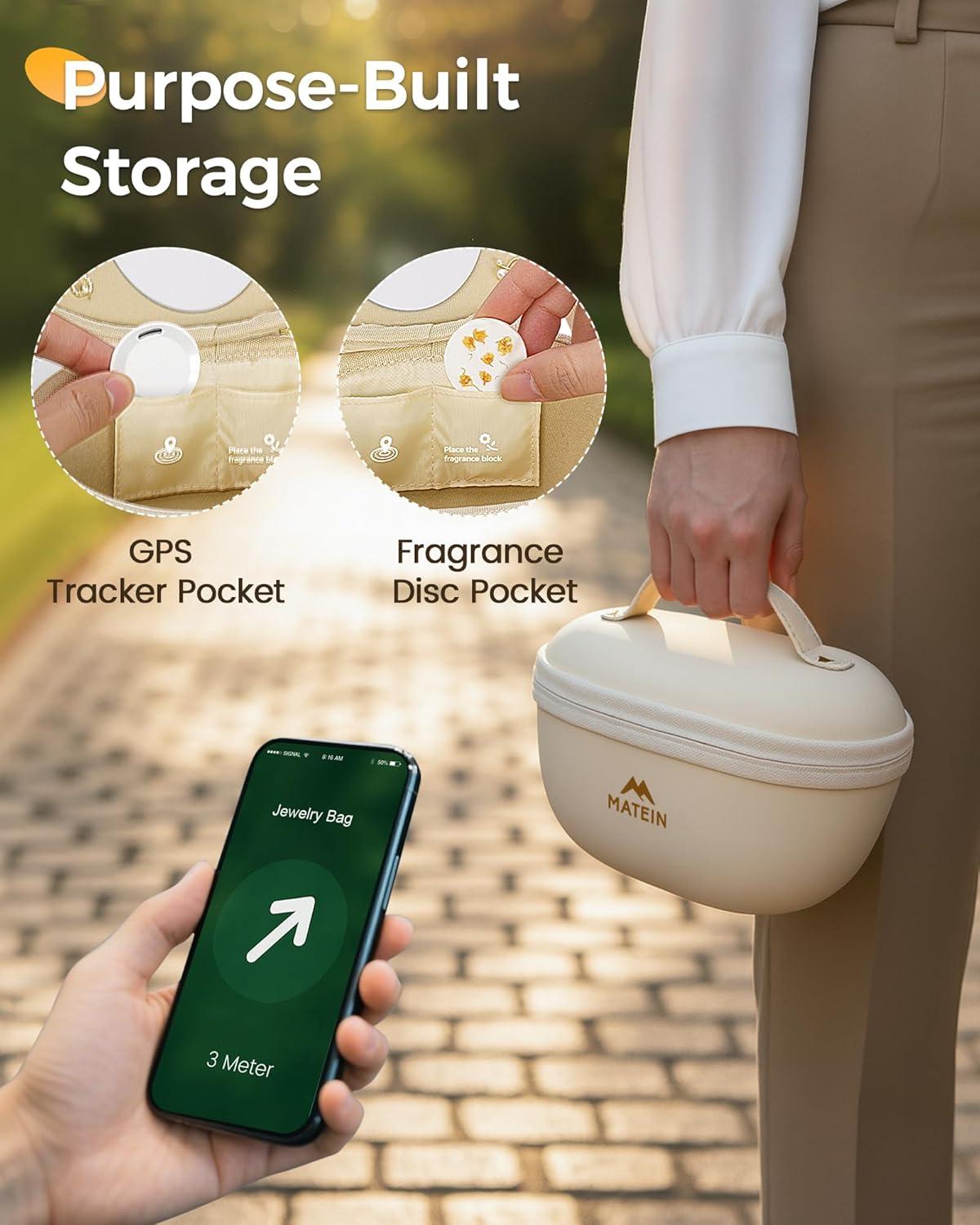 A Secure Gifts Choice: This beige travel jewelry box features 2 pockets for GPS tracker and fragrance disc. Place your own locator device inside to help track the jewelry case and avoid misplacing your jewelry during travel. A dedicated pocket holds fragrance discs, allowing you to add your own scented disc to keep your jewelry fresh while stored or on the go. It's a unique travel gifts for women, girlfriends, wives, mothers, and friends on Christmas, birthdays, and anniversaries