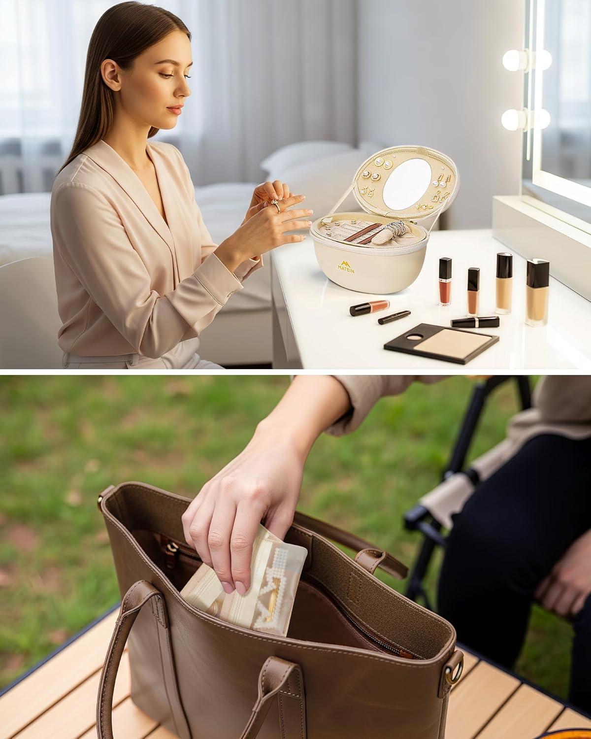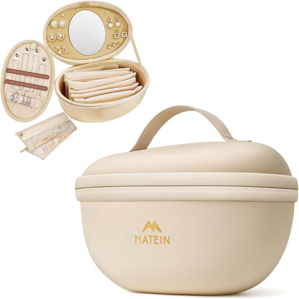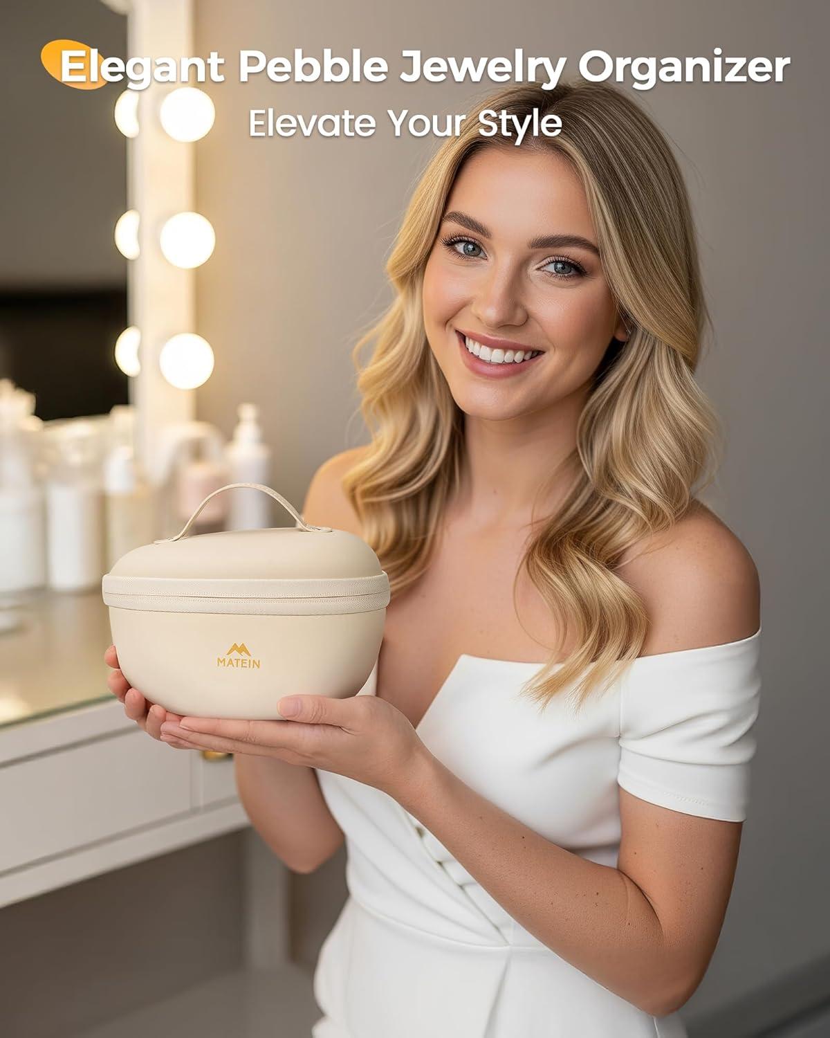 Elegant Pebble Style: Made from soft-touch beige PU leather and shaped with a refined pebble style, this travel jewelry case brings an elegant, silky touch to your daily organization routine. Its compact 7.9 × 4.5 × 4.5-inch size sits neatly on a vanity and tucks easily into a suitcase without taking up valuable space, making it ideal for home use or travel. Designed with a structured body that maintains its shape, it offers a stylish and convenient way to keep your everyday jewelry stored