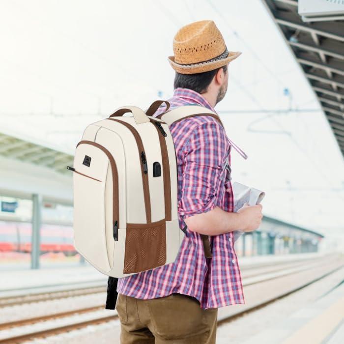 MATEIN Travel Laptop Backpack, Slim Sturdy College Laptops Backpack with USB Charging Port, Business Anti Theft Water Resistant Computer Bag Gift for Men & Women Fits 15.6 Inch Notebook(Beige)