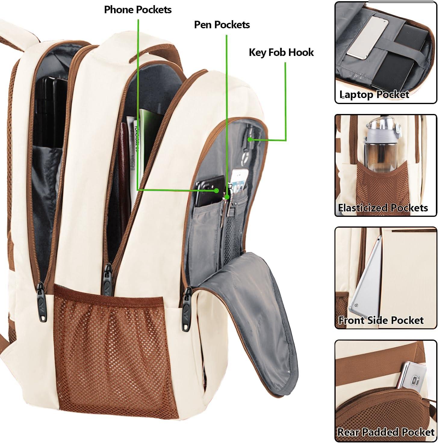 PLENTY OF SPACE & POCKETS: 1 separate laptop compartment fits up to 15.6 Inch Laptop as well as 15 Inch,14 Inch and 13 Inch Laptop. 1 spacious main compartment fits books,light clothes and college supplies or travel accessories. Front compartment with key fob hook provides organizer pockets for key, pens, pencils, earbuds. 2 mesh side pockets for water bottle and compact umbrella