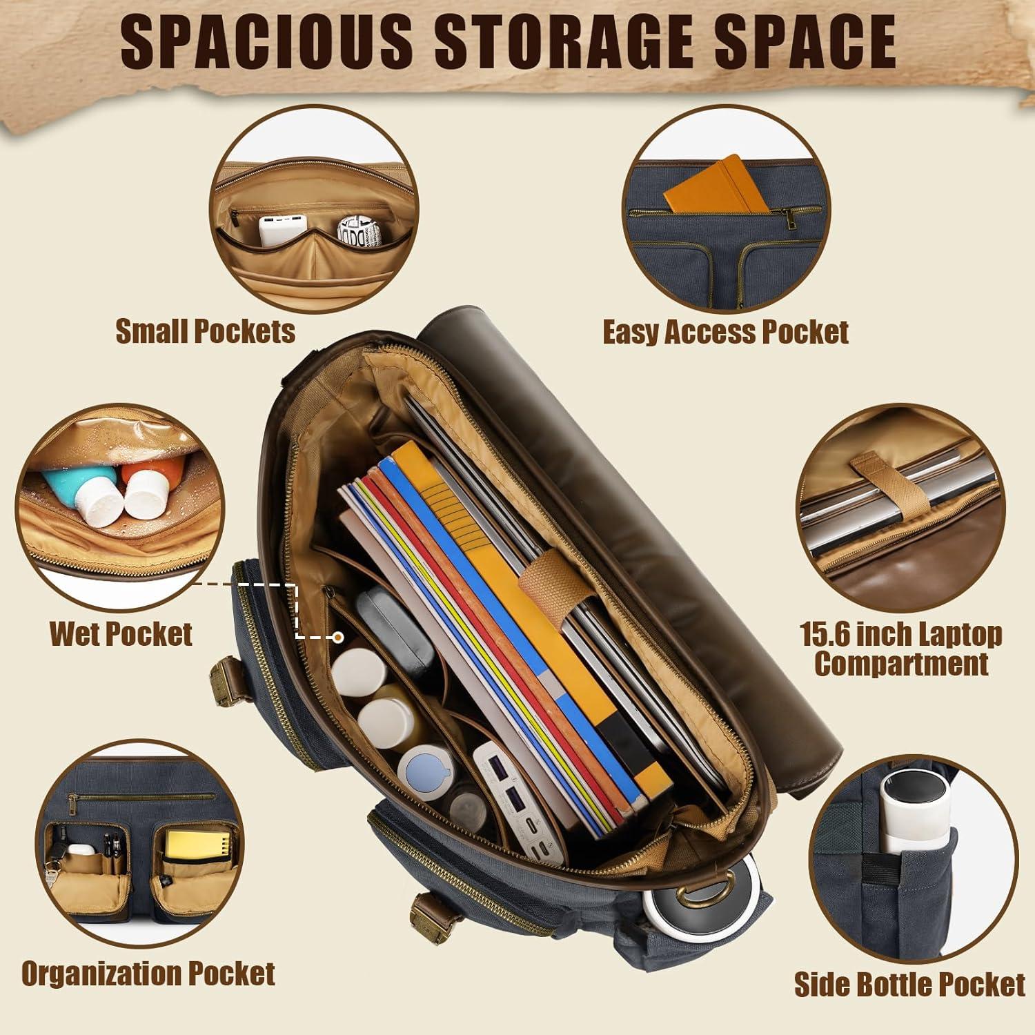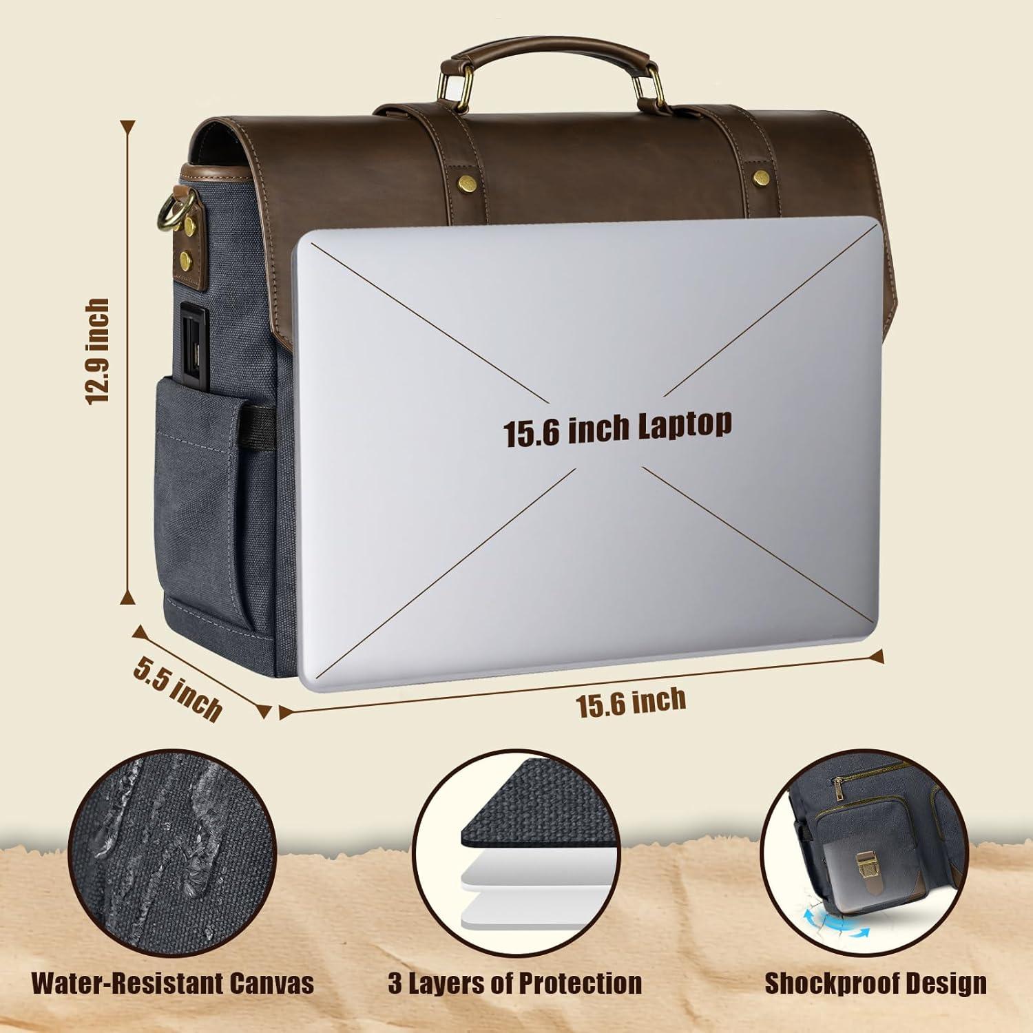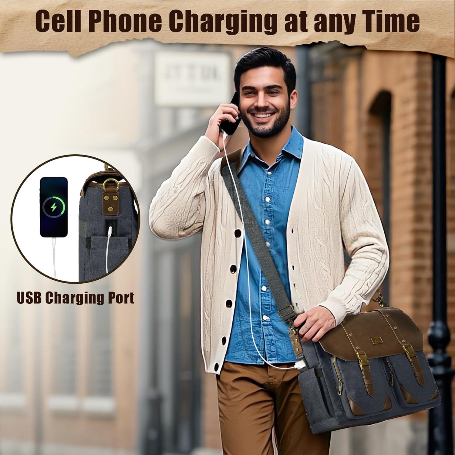 Versatile Laptop Messenger Bag: Dimension: 15.35*5.51*12.9 inches, Weight: 3.2LB. Canvas shoulder bag with large capacity and multi-pocket design (Up to 14 pockets), keep your daily supplies organized. Suitable for daily commute, college and work. This vintage crossbody bag with usb port can be used as a canvas business laptop bag, leather messenger bag for men and vintage briefcases for men. It is also a perfect father day gifts, gifts for father, your husband, friends, and family